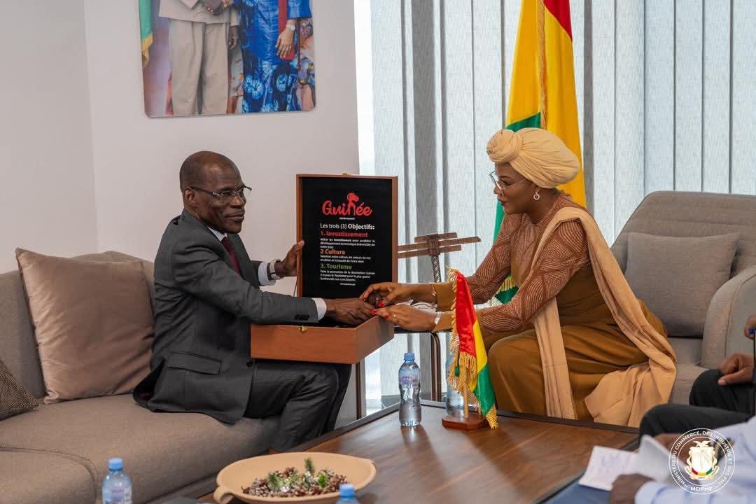 En marge de la cérémonie officielle de remise des Certificats d’Indication Géographique Protégée (IGP), Madame la Ministre de l’Industrie et des PME, Dre Diaka SIDIBÉ, en sa qualité d’Administratrice de l’OAPI pour la Guinée, a reçu en audience, ce lundi 21 octobre 2025, M. Denis Loukou Bohoussou, Directeur Général de l’Organisation Africaine de la Propriété Intellectuelle (OAPI).