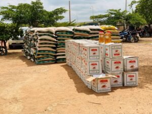 Ce lundi, il a procédé à une distribution de plusieurs sacs de riz et de bidons d’huile au profit des fidèles des deux confessions religieuses.