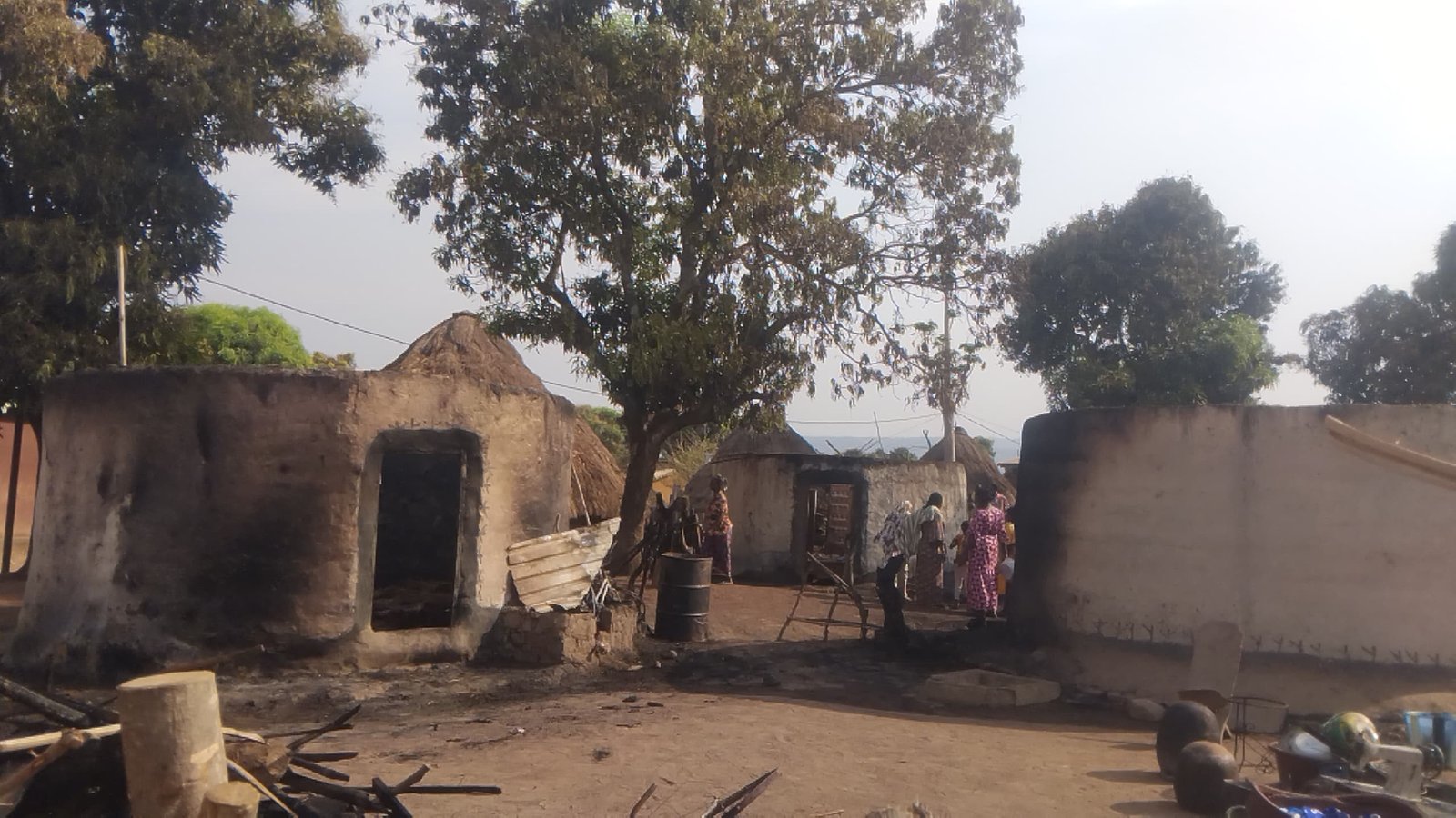 Selon les témoignages recueillis sur place par notre correspondant, trois cases, deux cuisines et une boulangerie, ainsi que l’ensemble de leurs contenus, ont été entièrement réduits en cendres.