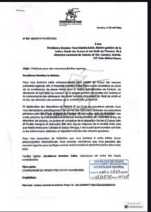 Lors d’une récente conférence, M. Dabo a formulé des révélations jugées graves par l’organisation, suscitant l’attention de l’opinion publique. Après avoir saisi les procureurs de Kankan et Conakry, le collectif franchit une nouvelle étape en sollicitant l’intervention du ministre de la Justice.