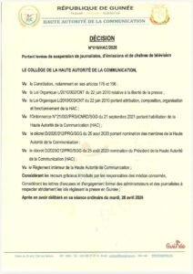 La Haute Autorité de la Communication (HAC) a levé, ce jeudi 30 avril 2026, la suspension de plusieurs médias et professionnels des médias.