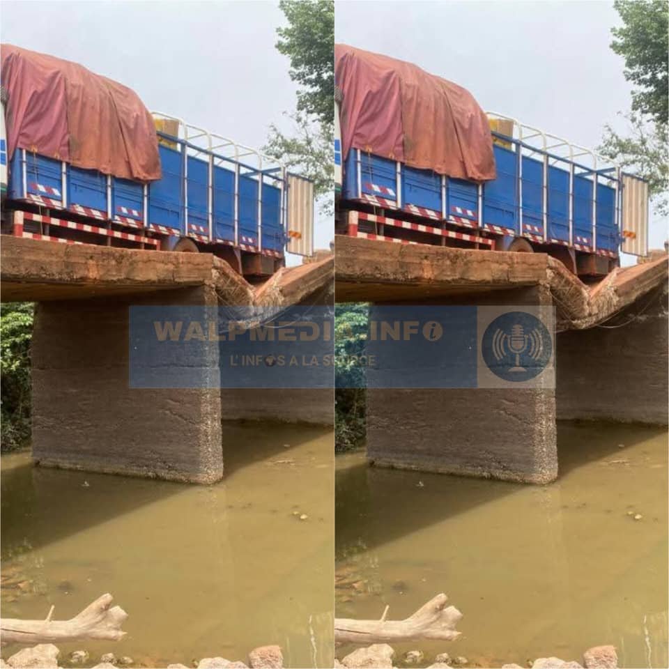 Selon les images prises par notre correspondant basé dans la localité, le pont aurait cédé sous le poids d’un camion, provoquant son affaissement partiel.