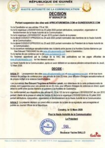 Urgent : La HAC suspend deux sites d’information pour incitation à la révolte Ci-dessous le communiqué.